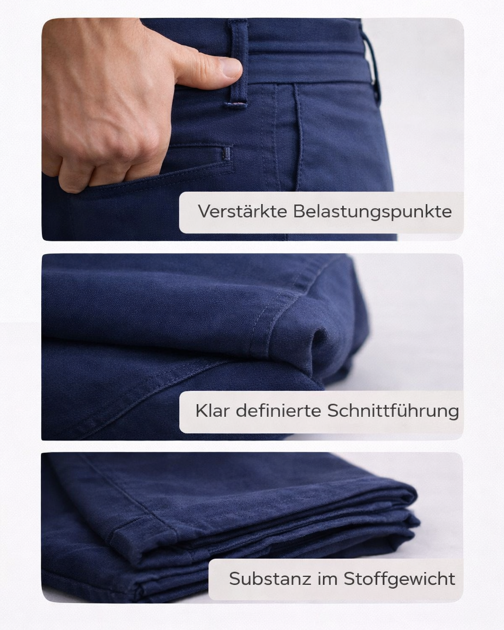 - Reduzierte Details ohne modische Übertreibung